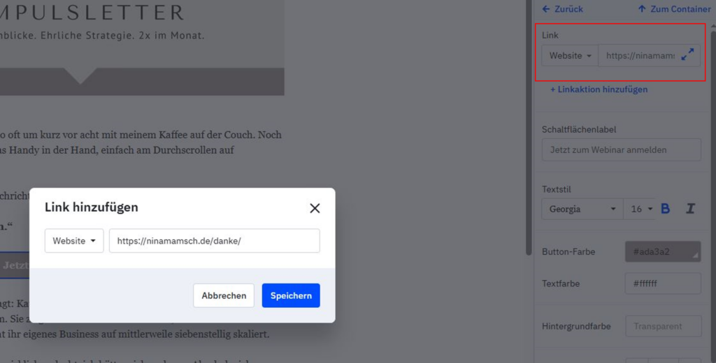 Diesen Button verlinkst du auf eine Danke-Seite auf deiner Website.