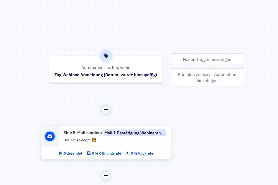 Die bestehende Webinar-Automation beginnt und verschickt die Bestätigungs-Mail.